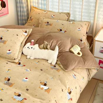 نوع سميكة الحليب الصوف الشتاء مزدوجة الوجه القطيفة سميكة أربع قطع مجموعة